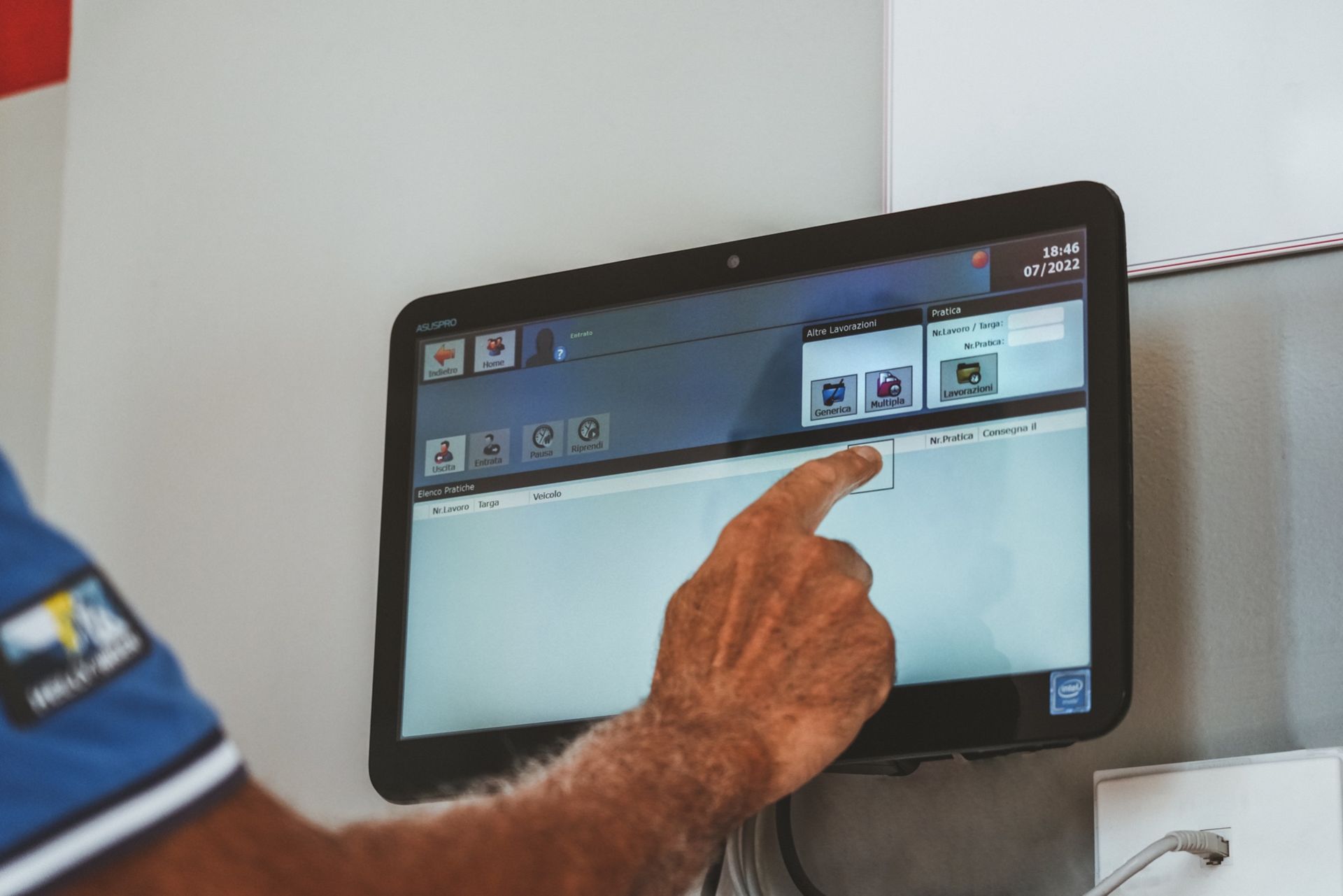 Touch screen system in each department to know in real time the progress of the car's processing